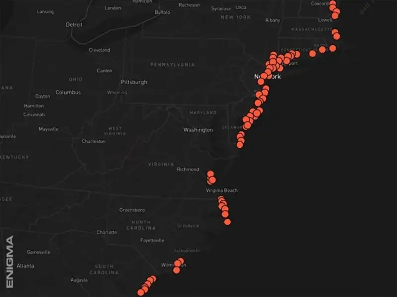 According to reports from both the New York Post and NewsNation, this isn’t just a handful of blips or isolated pings. The Enigma data reveals dense clusters of unknown objects moving beneath the ocean surface, stretching from the Pacific coastlines of California and Oregon to the deep Atlantic waters off Florida and the Carolinas.