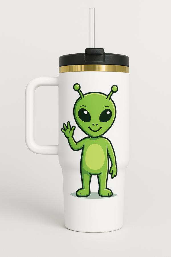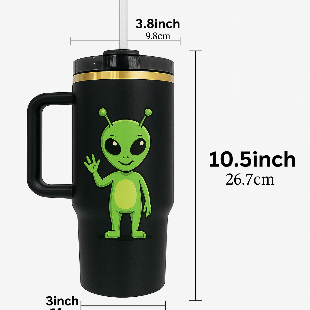 Sip in style with our 40oz Alien Collection Tumblr, designed for believers who know the truth is out there. This oversized, durable stainless steel tumblr keeps your drinks icy cold or piping hot for hours, making it perfect for late-night sky watching or long days on the go.